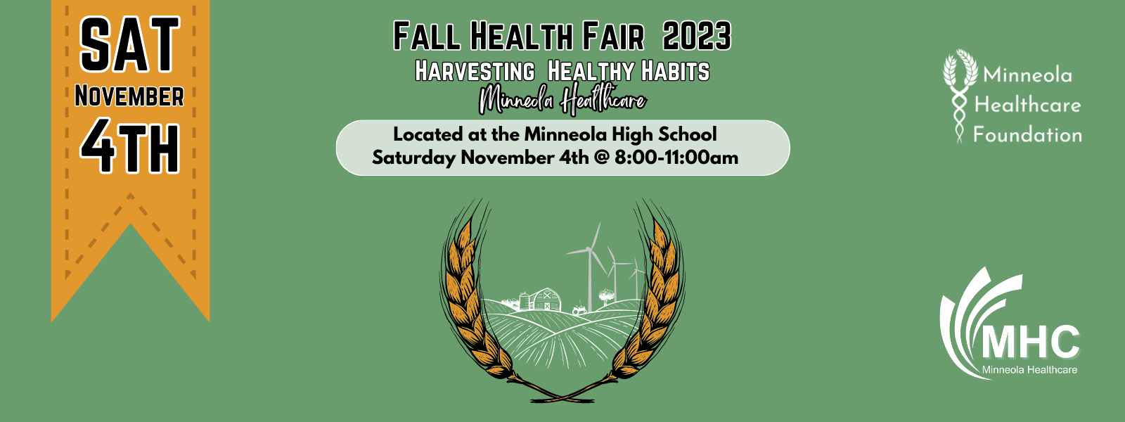 Join Minneola Healthcare and the Minneola Healthcare Foundation at the 2023 Fall Health Fair - Harvesting Healthy Habits. There will be discounted labs, flu vaccines, skin cancer checks, vendor booths, giveaways, and so much more!